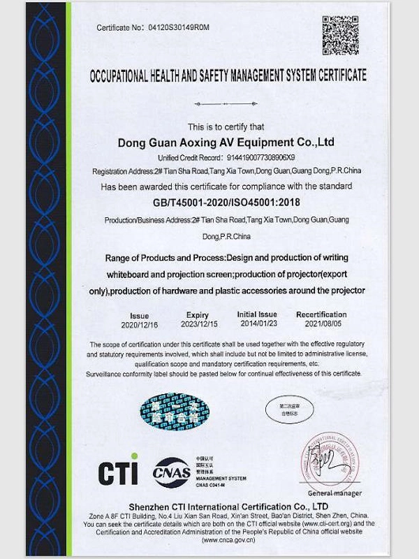 In 2012, Aoxing Audio-Visual Equipment Co., Ltd. achieved a lot: its participation in the association increased, and it joined the China Education Equipment Industry Association, taking the lead as the president unit of the Dongguan Small and Medium-sized Enterprises Service Organization Association; it attached equal importance to honor and responsibility, winning the titles of "Four-Star Party Organization in Dongguan" and "Advanced Enterprise in Safe Production", and was awarded the title of "Caring Enterprise" for its public welfare sponsorship; it established international cooperation links with Japanese and German enterprises, collaborating with NEC and PLUS from Japan, as well as Franken and Maul from Germany.