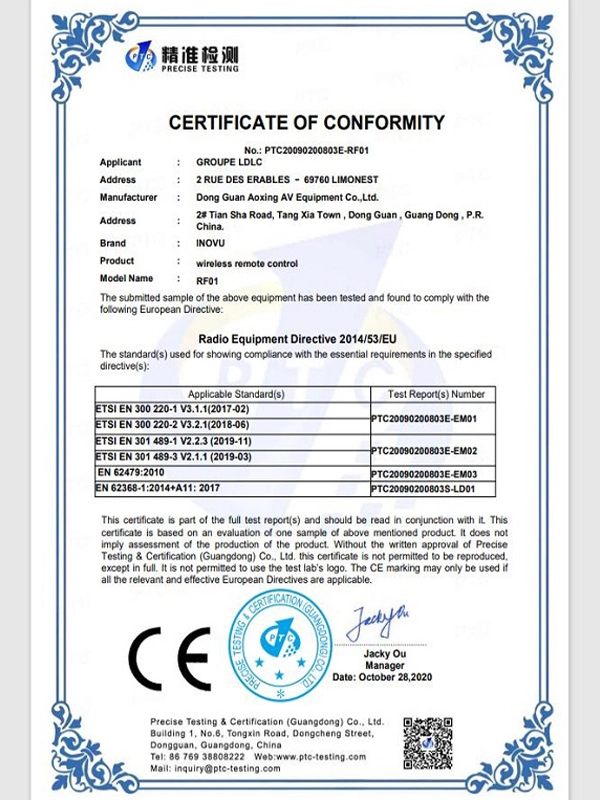 In 2020, Aoxing Audio-Visual Equipment Co., Ltd. made comprehensive efforts: in terms of industry participation, it served as the vice president unit of the fourth council of Dongguan Enterprise Confederation/Association and its CEO enterprise was awarded the fourth executive vice president unit of Chaoshan Chamber of Commerce; during the epidemic prevention period, it took the initiative to cross the industry boundary to produce masks to support epidemic prevention; business cooperation and qualification certification were promoted simultaneously. It cooperated with China Nut to obtain the qualifications of "innovative small and medium-sized enterprises" and "high-tech enterprises", becoming a key partner of the international business of Bank of Communications Dongguan Branch; in terms of honors, it was awarded the title of "provincial-level contract-abiding and credit-abiding enterprise" for two consecutive years, was recognized as "industrial enterprise with doubled scale benefits" and "top ten domestic enterprises in total export value" in Tangxia Town, and participated in the farmland water conservancy assistance project of the e-commerce association, balancing development and responsibility.